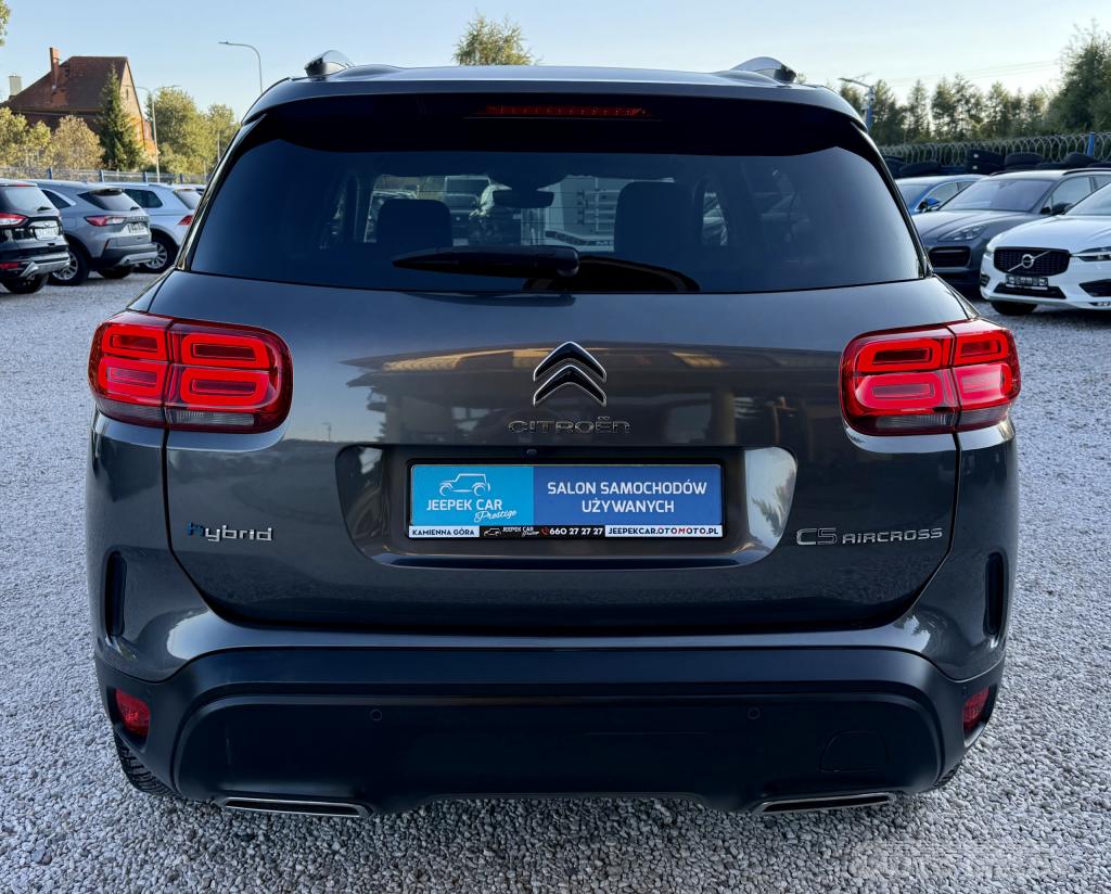 Do sprzedania posiadamy sprowadzonego <b>Citroena C5 Aircrossa z końca roku 2021<\/b>. Auto <b>od 1-go właściciela<\/b>, który na bieżąco wykonywał wszystkie przeglądy, co jest potwierdzone książką serwisową ( w celu sprawdzenia podaję nr.VIN).<b>Citroen jest bezwypadkowy<\/b>, stan auta bardzo dobry, silnik, zawieszenie i automatyczna skrzynia biegów pracują idealnie, karoseria bez rys, wnętrze czyste i zadbane. Jednostka napędowa to ekonomiczna i dynamiczna turbobenzyna o poj.<b>1600 ccm o mocy 181KM + napęd hybrydowy typu plug-in, łącznie oba silniki zapewniają moc 225KM<\/b>. Najdroższa i najbogatsza wersja <b>wyposażenia SHINE:<\/b>