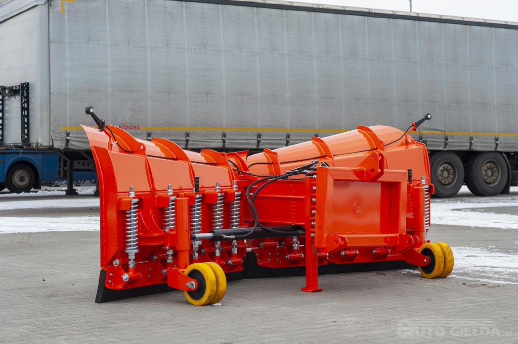 Ciężki, składany pług hydrauliczny przeznaczony jest do ładowaczy czołowych oraz ładowarek. Można zamocować go również pod trójpunkt w ciągniku. Służy do odśnieżania oraz wyrównywania podłoża np. placów, dróg, parkingów, terenów przyfabrycznych etc., jak również do usuwania, zgarniania obornika oraz wyrównywania dróg gruntowych w innych porach roku niż zima.