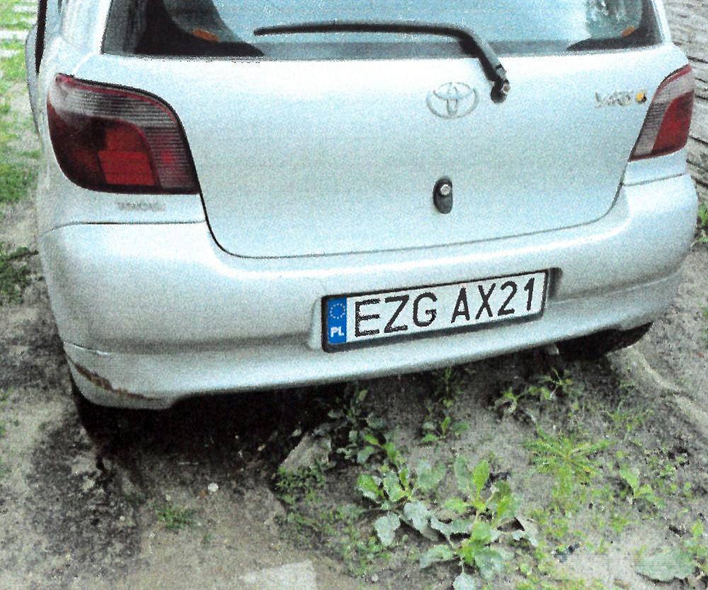 - samochód osobowy marki Toyota Yaris, rok produkcji 2000, o numerze rejestracyjnym EZGAX21 oraz numerze identyfikacyjnym VIN: JTDJW183600044916.