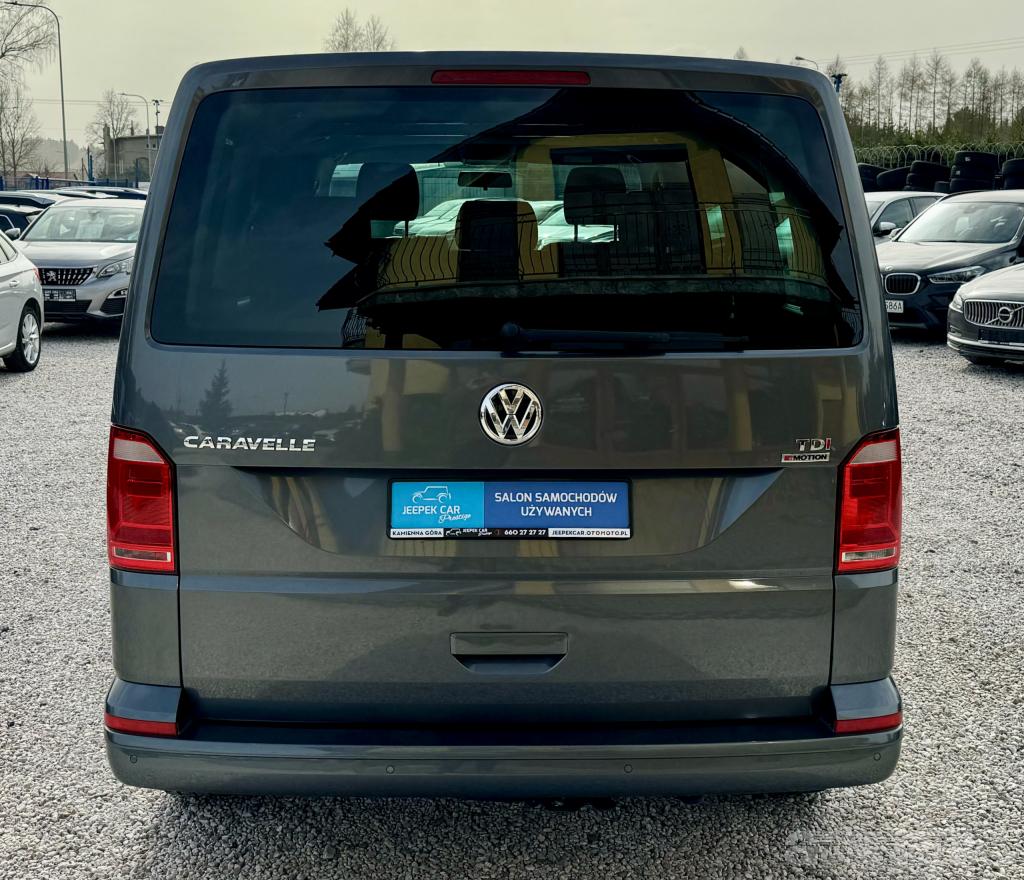 Do sprzedania posiadamy <b>Volkswagena Caravelle z roku 2018 4-Motion<\/b>. Auto sprowadzone od 1-go właściciela, który na bieżąco wykonywał <b>wszystkie przeglądy w ASO<\/b> - nie wymaga żadnego wkładu finansowego, kpl. wymiana rozrządu przy 178 tys.km. (w celu weryfikacji udostępniam nr. VIN ). Volkswagen jest bezwypadkowy, wnętrze auta czyste i zadbane, karoseria bez rys i wgnieceń, silnik, skrzynia biegów i zawieszenie pracują bez zarzutu. Jednostka napędowa to niezawodny i ekonomiczny TDi - o poj. 2000 cm i mocy 150KM. <b>Wyposażenie:<\/b>